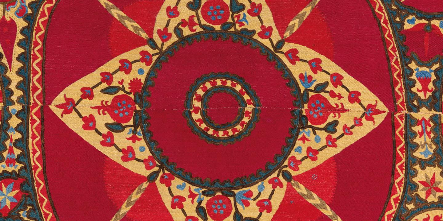 Embroidery is one of the most elaborate forms of traditional art in Uzbekistan. Historically, it was an integral part of a girl’s dowry and often used in home interiors. Nowadays, it is also an important design and fashion element. Suzani is a large decorative textile wall hanging usually made from cotton or silk cloth and embroidered with silk threads. The term derives from the Persian word ‘suzan’ meaning needle.